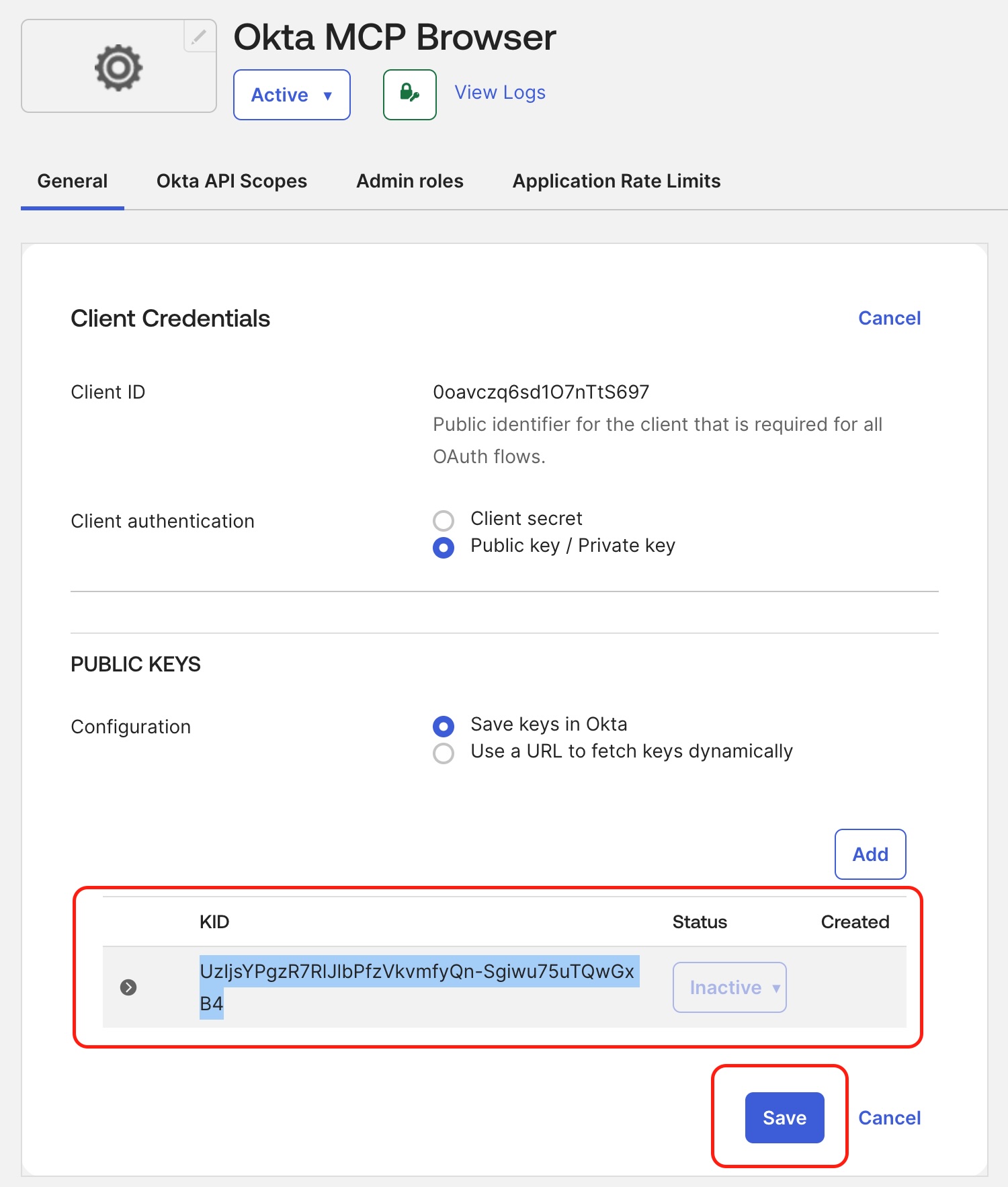 Copy the Client ID and Key ID (KID).