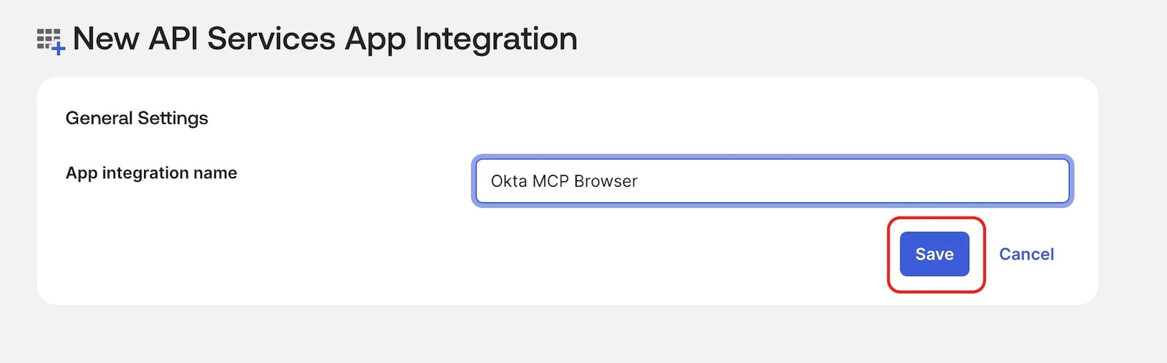 In your Okta org, create a new API Services App Integration.